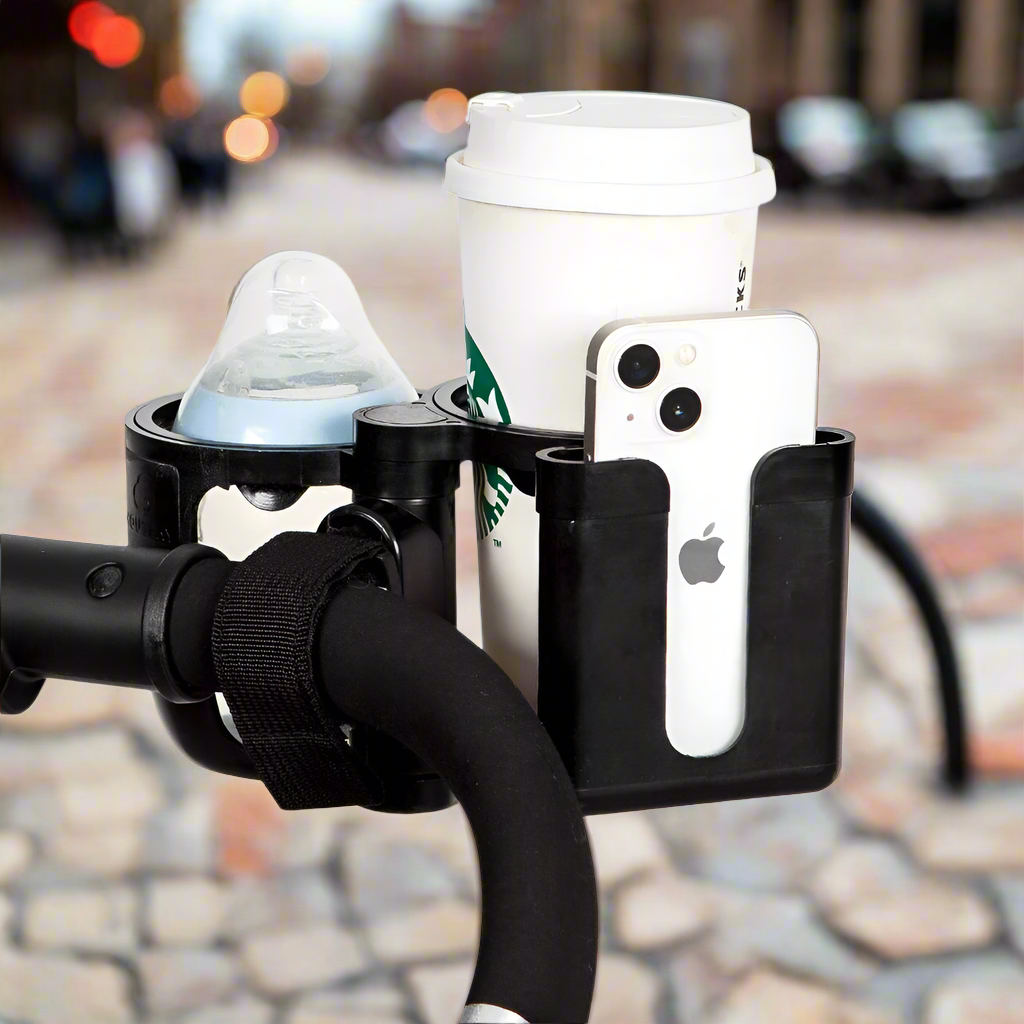 Designed to fit all strollers, it attaches easily without any hassle, giving you the flexibility to adapt to any situation. Need coffee for you, a bottle for baby, and your phone for everything else? You’ve got it, right where you need it.